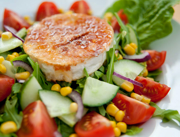 GF/V Grilled Goat’s Cheese on warm beetroot with Balsamic coulis (with chips as a main course)