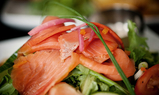 Loch Torridon flake roasted and cold smoked salmon, served with mixed side salad