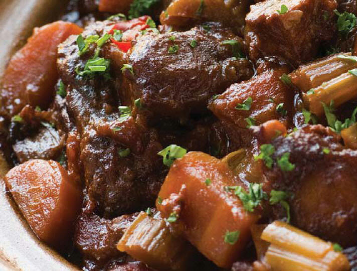 Casserole of Venison and roasted cherry tomatoes; Munro's award winning haggis, flambéed