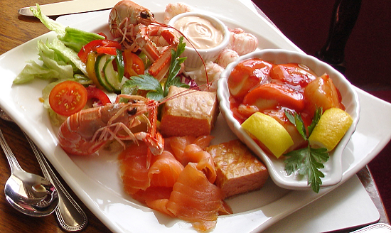 smoked salmon, Applecross Bay prawns, hand-